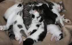 De effecten van het voeren van Anifit werden al na korte tijd duidelijk. Niet alleen is onze Minka, die erg mollig is en veel te veel kilo's weegt ondanks het feit dat ze weinig eet, veel beweeglijker geworden sinds Anifit en eet ons 14-jarige probleemkind Gisi (met een ernstige nierziekte) ineens weer met eetlust, nee, onze Pinki is op 13 september moeder geworden van maar liefst 10 baby's. Een sensatie, zoals de dierenarts zei, want zoiets kende ze alleen uit het medische boek, maar dan wel met acht baby's. De kittens moesten met een keizersnede ter wereld worden gebracht. De dierenarts gaf maximaal vier baby's een overlevingskans, maar alle 10 baby's waren springlevend.