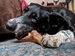 Voordeel van de traktatie: De stukjes zijn geschikt voor middelgrote + grote honden, zeker een lang kauwplezier zodat de hond een tijdje bezig is, het is ook perfect voor gebitsverzorging.